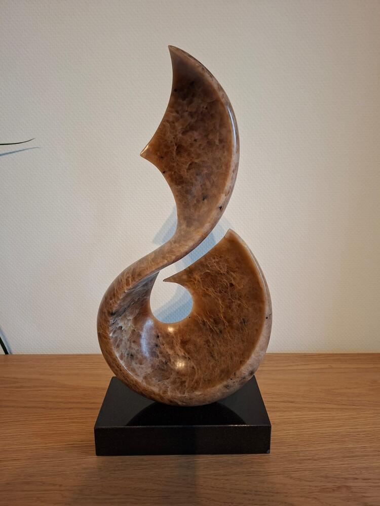 Deze werken ontstaan vanuit een grote liefde voor beweging. Ik werk zowel in zachte als hardere stenen, met wel een voorliefde voor albast. Mijn beelden ontstaan vanuit de steen zelf, vrije vormen maar ook wel figuratief. Bij het werken in de steen kom ik volledig tot mezelf en heb ik het gevoel één te worden met de steen.