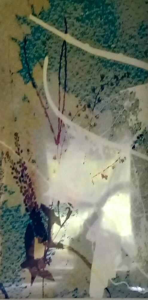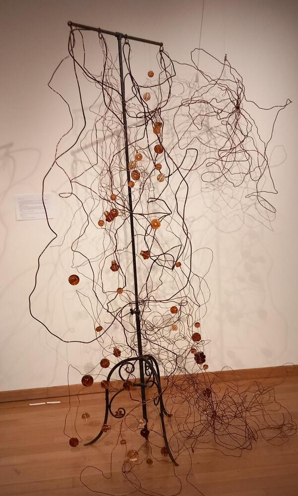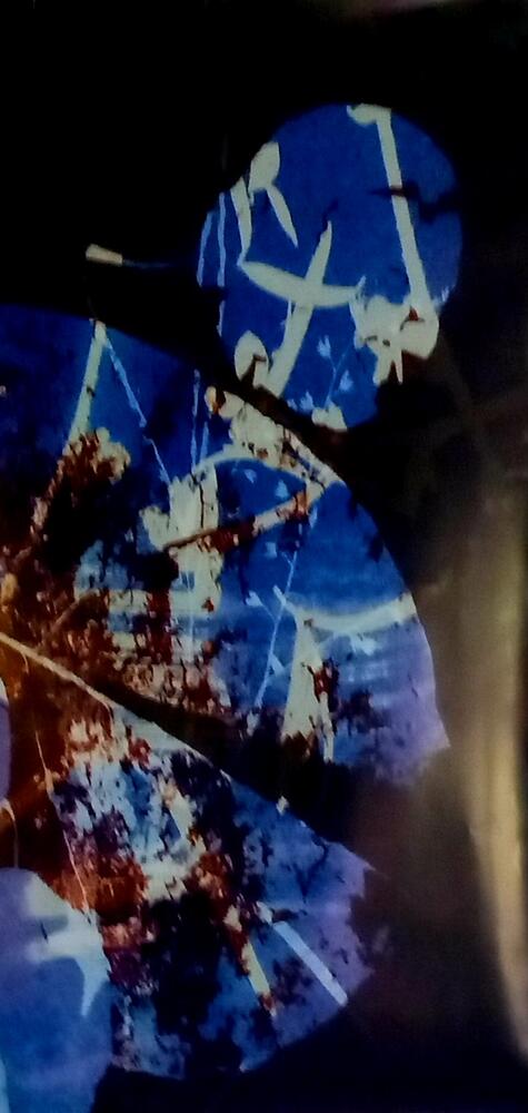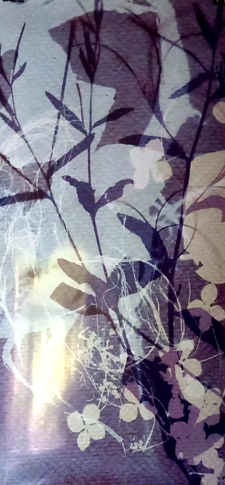 "glans van glas" bestaat uit gebruikte koperdraad en glazen deurknoppen afkomstig uit het bombardement van kontich tijdens de 2e WOde reeks "flora flamenca" bestaat uit cyanotypes, de flora is afkomstig uit mijn woonplaats genk