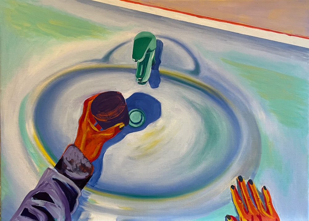 Anastasia schildert en werkt op de achterkant van geprepareerd linnen. Ze gebruikt olieverf en spuitbus: de spuitbus legt de eerste laag, vormt horizonten en vlakken; met olieverf bouwt ze diepte en detail. Haar stijl neigt naar magisch realisme: herkenbaar, maar nooit volledig trouw aan de werkelijkheid.
