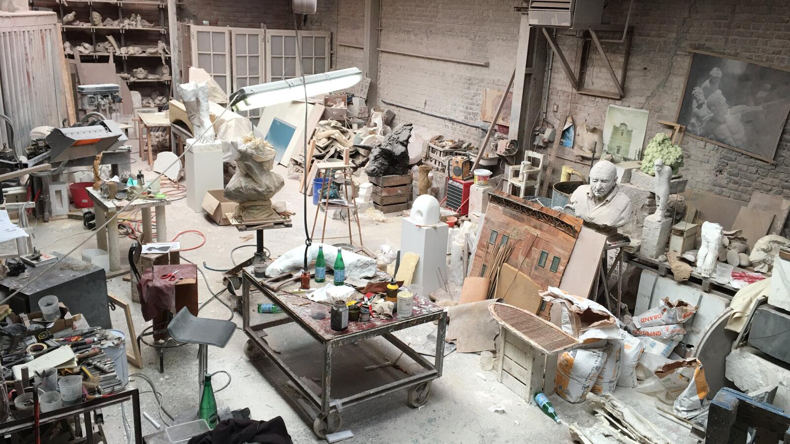 Isidoor werkt al sinds begin jaren 80 in zijn eigen atelier. Zowel werk in opdracht, recente beeldhouwwerken., ‘Oud’ werk, moules, houten laatjes, allerhande experimenten, enz.. zijn te bezichten.