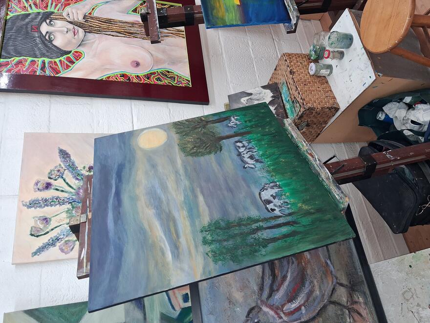 Het atelier is gevestigd in de poelstraat 40 9820 Merelbeke waar geschilderd, getekend en aquarelle kan beoefend worden .