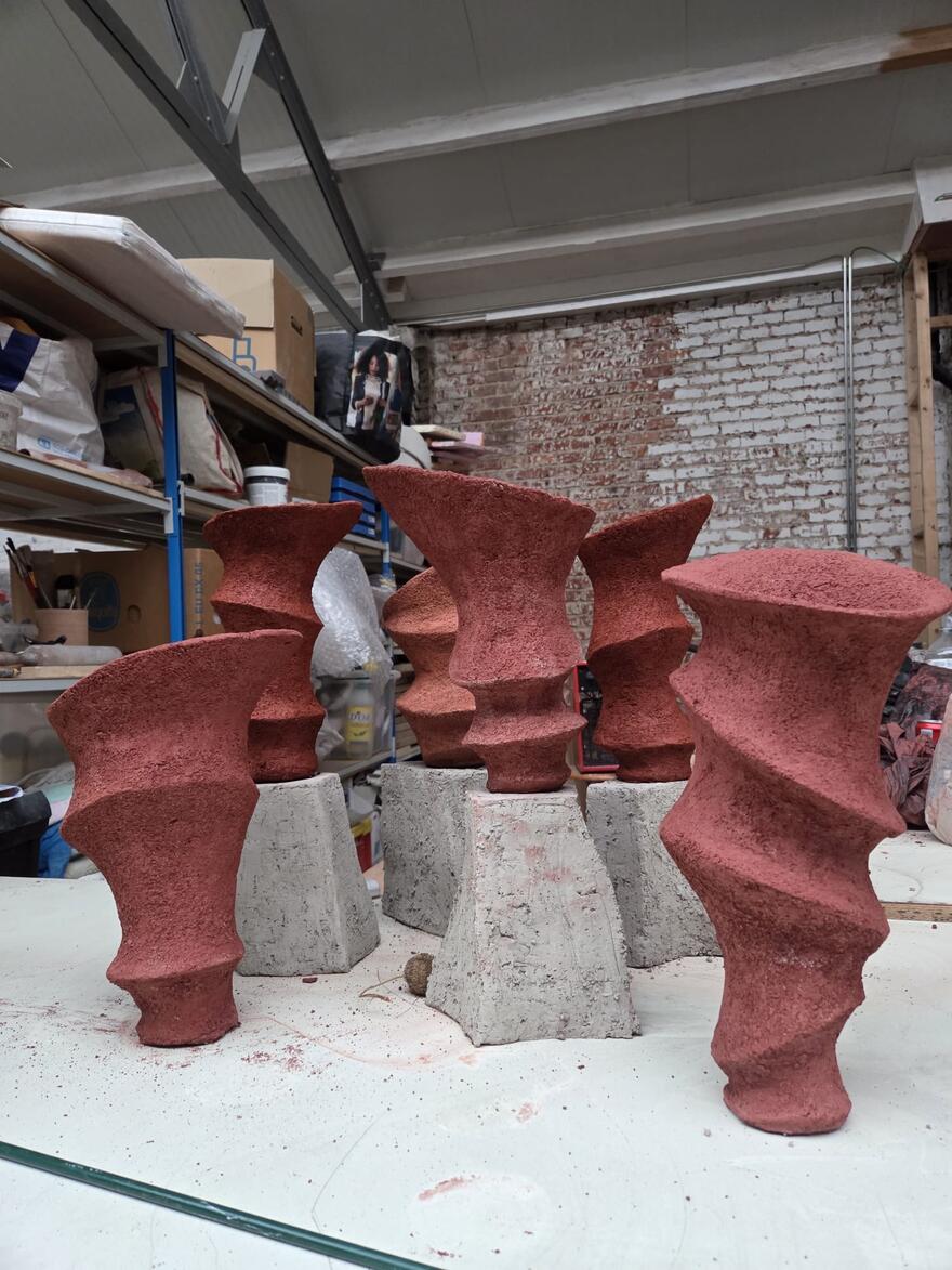 We delen met zeven makers één atelier, elk met een eigen praktijk en focus. Binnen het atelier vind je mode, sculptuur, juweelontwerp, hout- en laswerk, design en keramiek. Verschillende disciplines onder één dak, waar iedereen zijn eigen ding doet en waar we elkaar geregeld vinden om kennis en ervaring te delen!