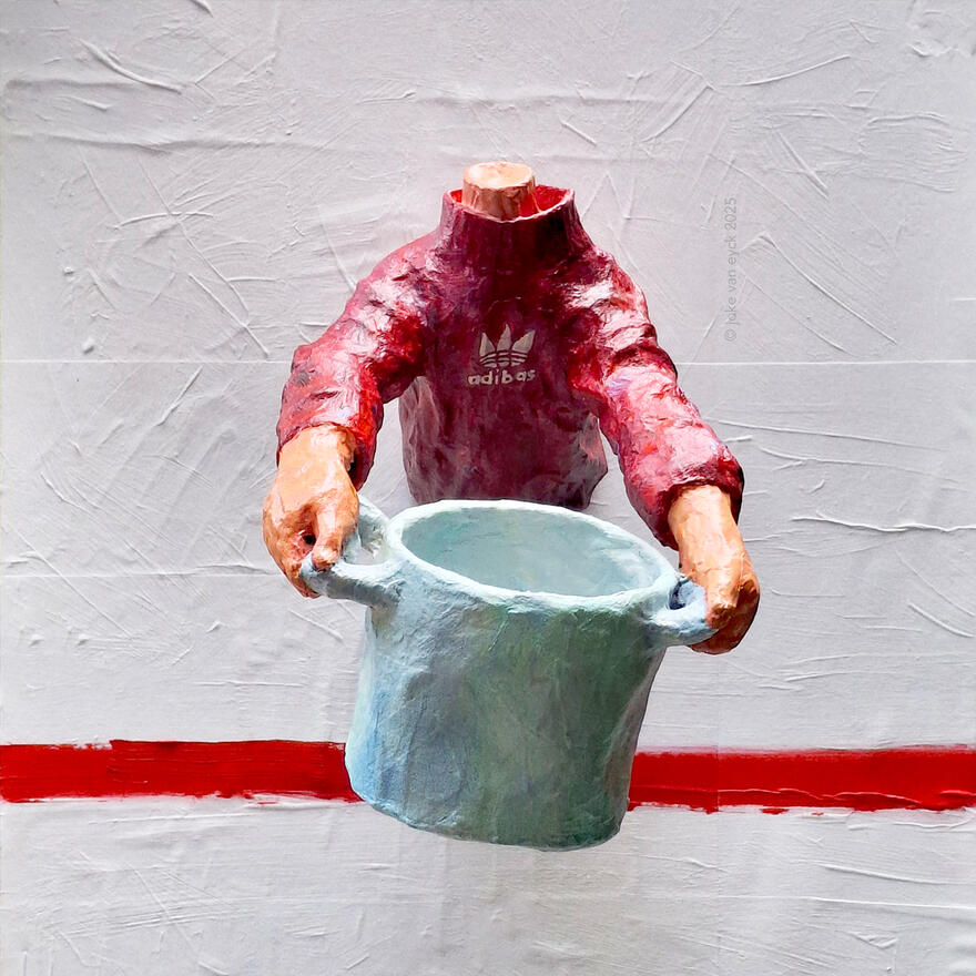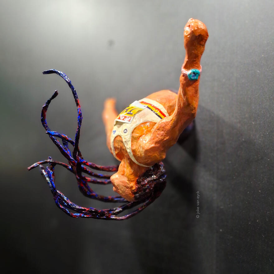 Joke Van Eyck denkt 2D en laat figuren uit de muur verschijnen. Iconische beelden met een verhaal.
