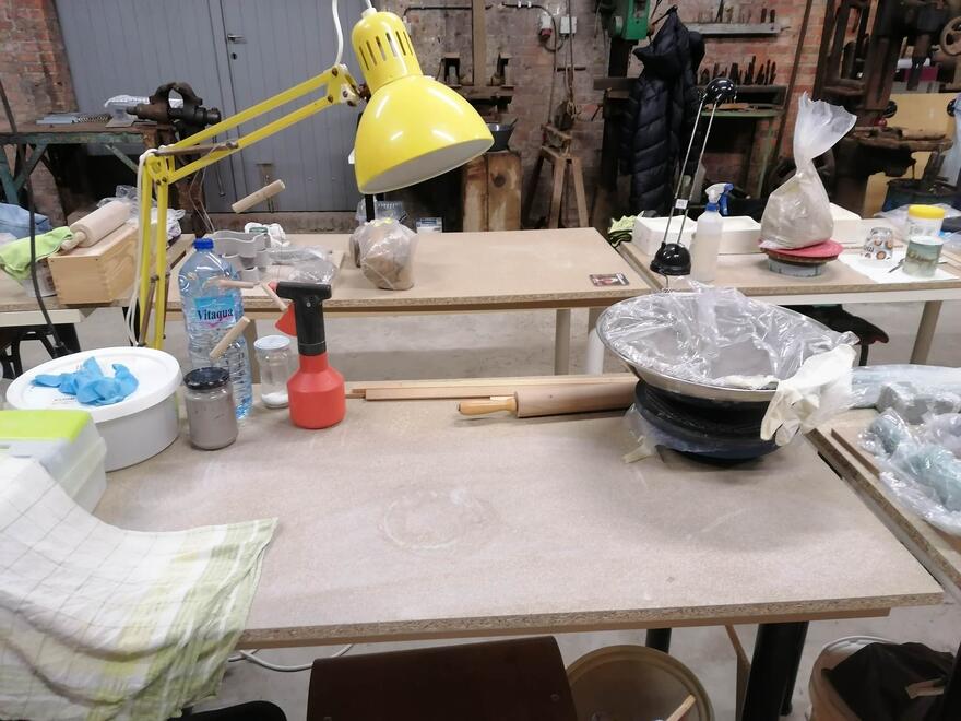 Het atelier is een collectief van ex-cursisten van keramiekatelier De Steiger in Boom.