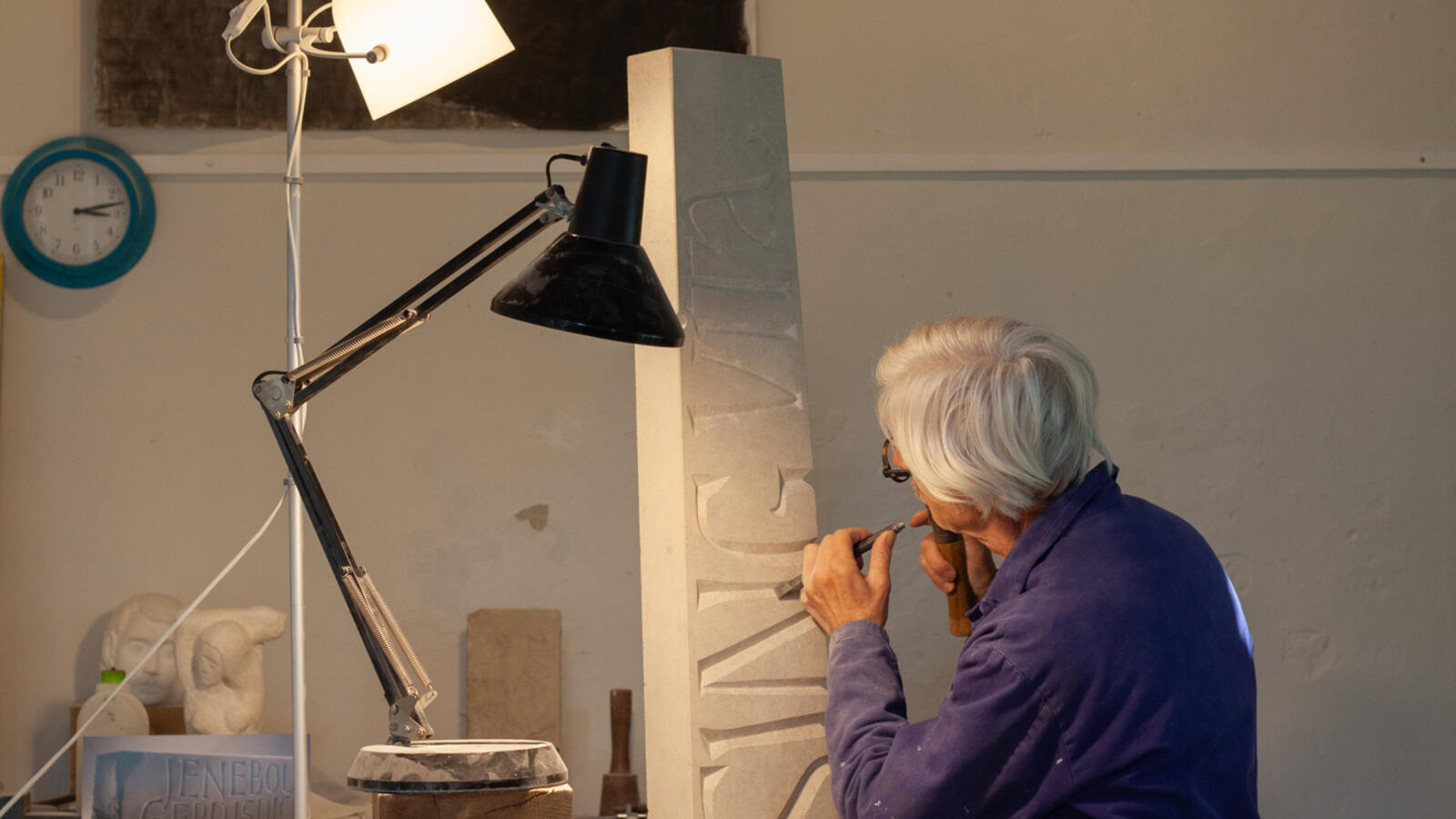Kristoffel Boudens: maker op vijf poten. Ik ontwerp letters en kap ze uit in steen. Daarnaast verlies ik mij in tekenen, schilderen, beeldhouwen in steen en schrijven.