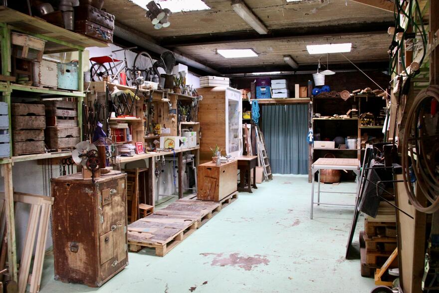 Creatieve werkplek voor en door creatieve ondernemers. Glas-in-loodkunstenaar, schrijnwerker, meubelontwerper en theatermaker op 1 plek, dat is een bezoekje waard!
