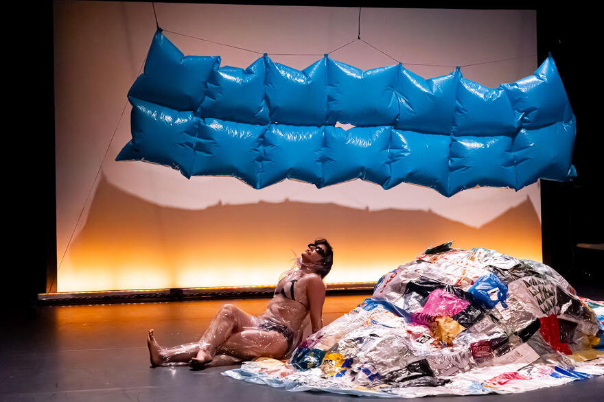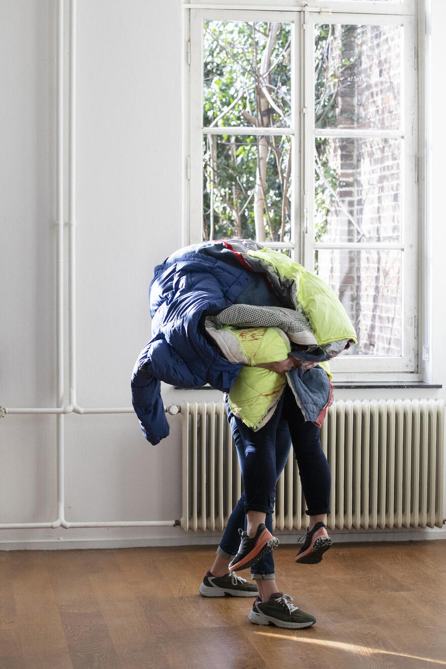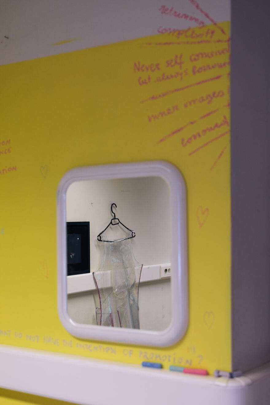 Explores the relationship between body and materiality by means of textiles and plastics.