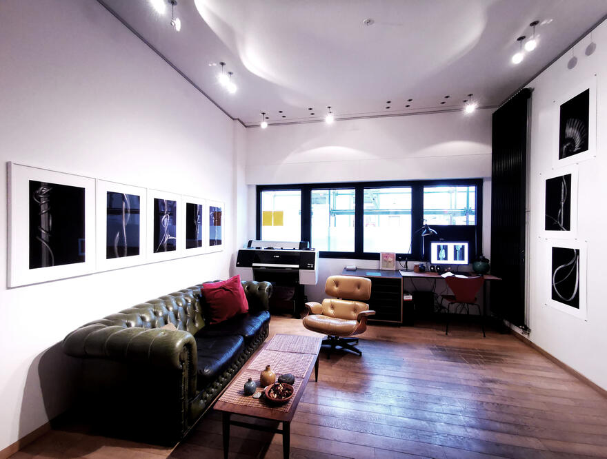 She lives and works in Sint-Jans Molenbeek, Belgium. Her wall installations of black-and-white macro photographs of forms unite by instilling a deeper connection with nature.