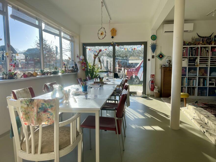 Naast haar eigen artistieke praktijk organiseert Annabel workshops in het atelier en op locatie, waarbij experiment, zintuiglijk werken en duurzaam omgaan met materialen centraal staan.