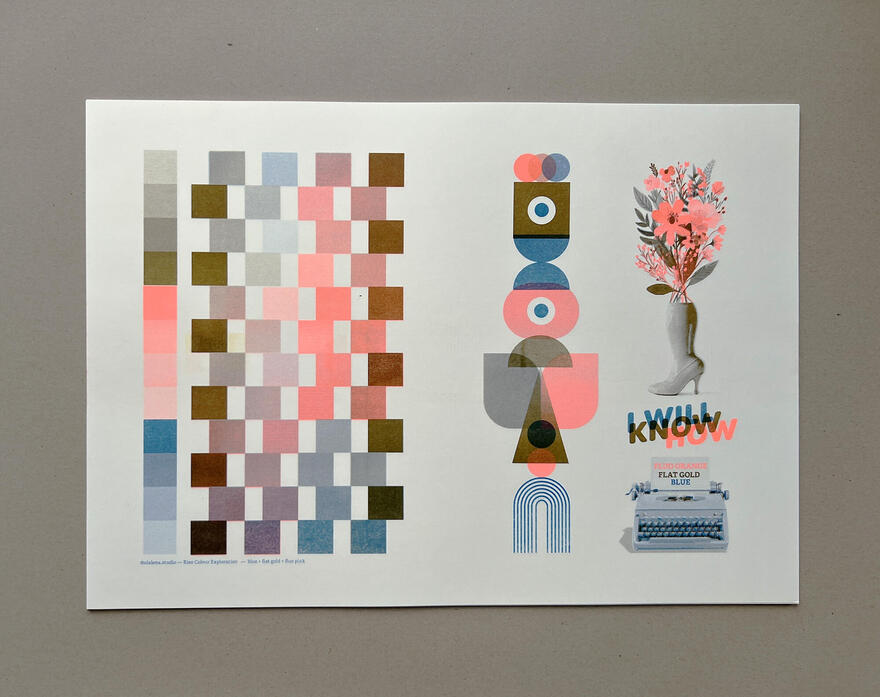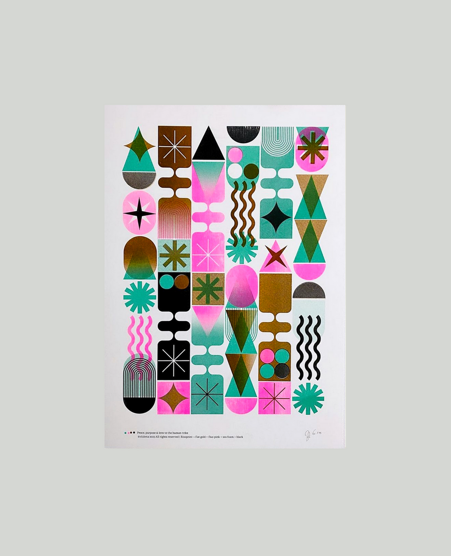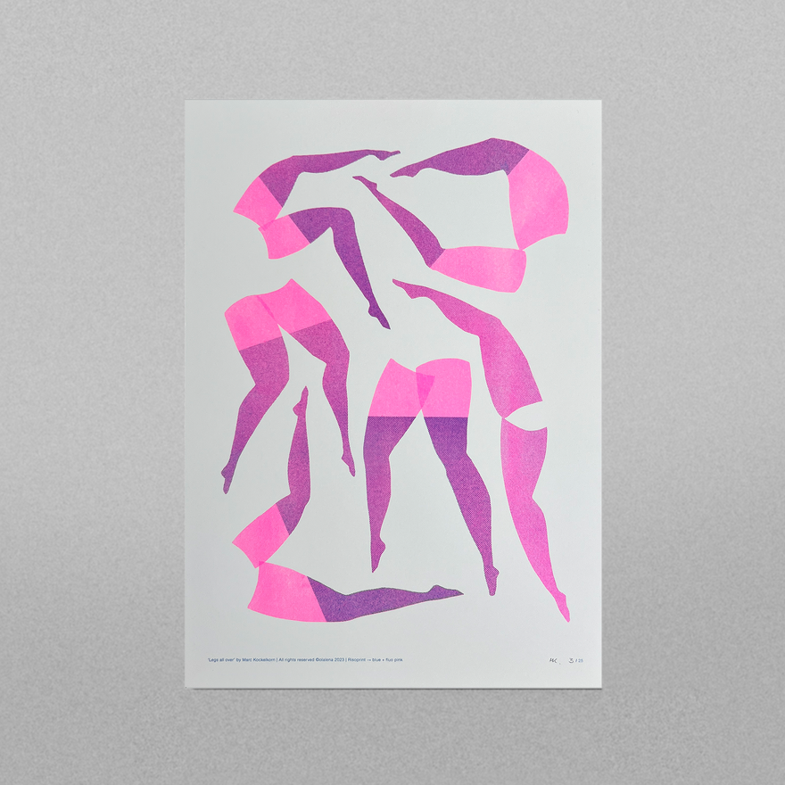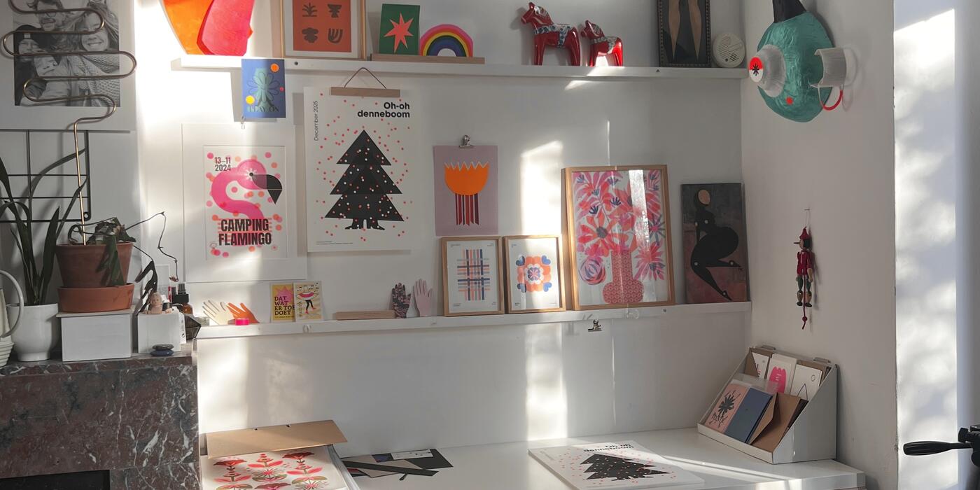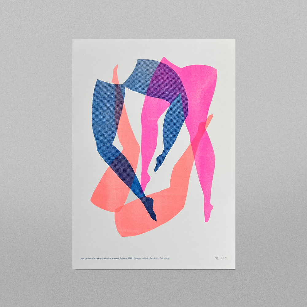 Ik ben inmiddels 15 jaar actief als zelfstandig art director en grafisch vormgever vanuit mijn thuisstudio, olalena. Naast mijn werk voor klanten ontdekte ik drie jaar geleden de wereld van risografie — een techniek waarin ik me verder aan het verdiepen ben. Door veel te experimenteren groeiden zowel mijn kennis als mijn enthousiasme, en ontstond een eigen verzameling prints, experimenten, posters, collages en kaartjes.