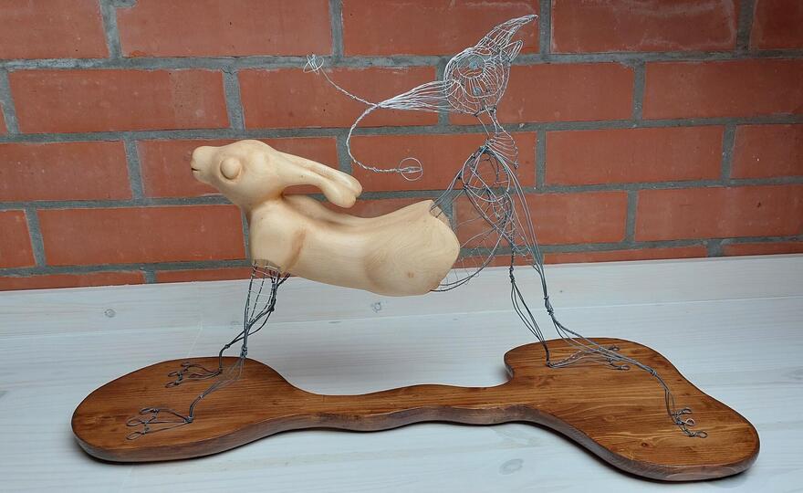 In mijn laatste werk probeer ik het warme organische van het hout te combineren met de harde lijnvoering van het metaal.