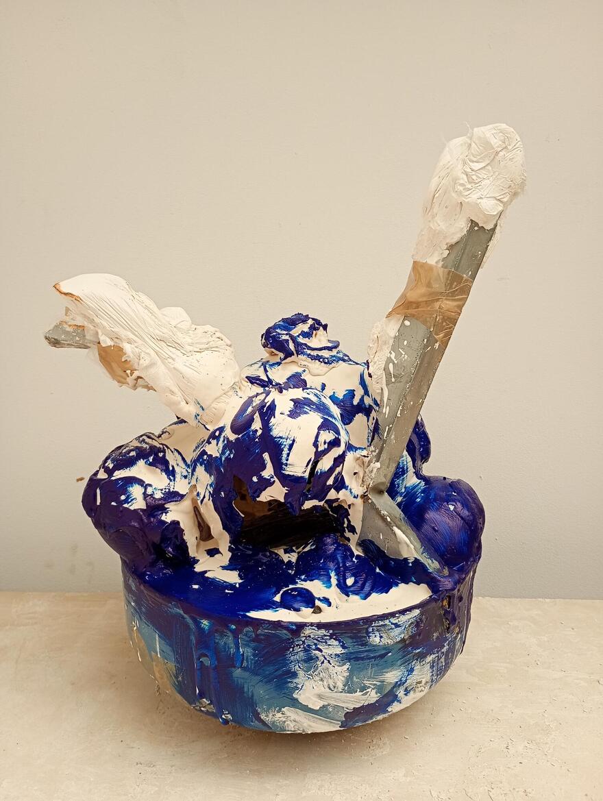 Zijn queeste ligt in het uitbalanceren van materialen om tot een beeld te komen dat in zijn gelaagdheid, gedimde explosiviteit draagt. Krachtige, primitieve emoties in lijn.