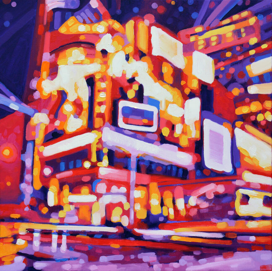 'De stad is een belangrijke invloed van tekens, symbolen, vormen en kleuren. Oorspronkelijk beeldde hij tekens op zich af, maar in recent werk komt hij door middel van totale abstractie tot de essentie.