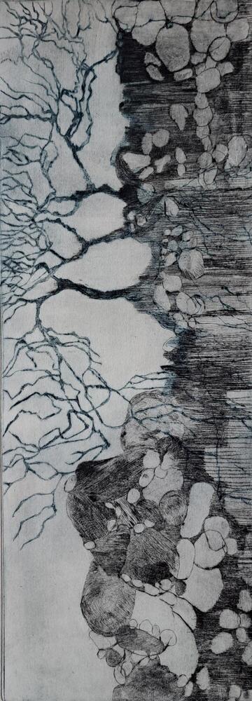 Mijn werk wordt meestal geïnspireerd door de natuur. Mooie dingen die mij opvallen en aanzetten tot expressie. Stenen, rotsen, bomen, takken en wortels. Ik probeer vooral mijn eigen beeld samen te stellen en gebruik graag grafische technieken zoals etsen, droge naald, monoprint, linosnede.