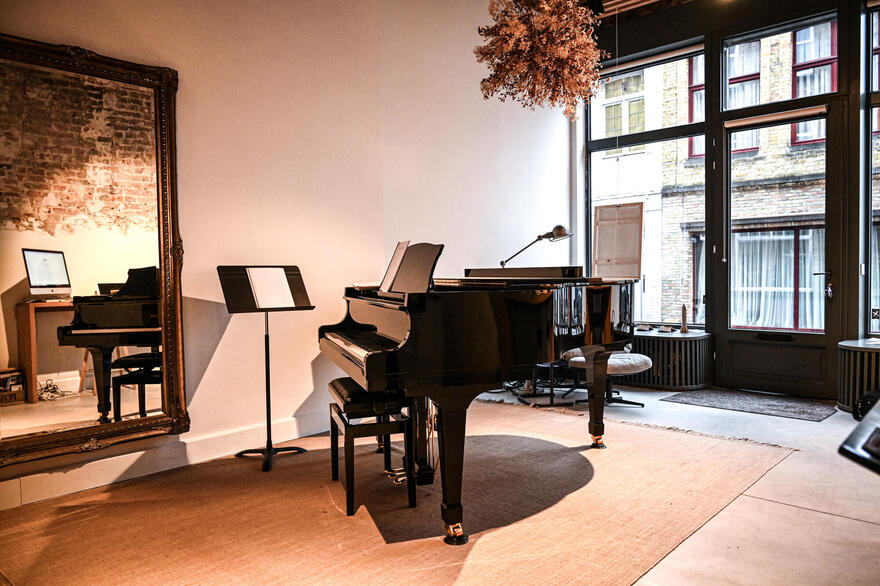 Dit jaar vindt de Open Studio uitzonderlijk plaats in Vitrine35, het Open Huis dat Dominique samen met Sun Mee begin dit jaar oprichtte. Vitrine35 wil een ontmoetingsplaats zijn voor woord, beeld en muziek — een ruimte waar verschillende kunstvormen elkaar kruisen en waar dialoog centraal staat.