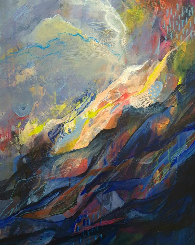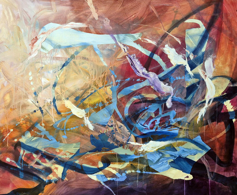 Mijn innerlijke leefwereld laat zich niet altijd in woorden vatten – gelukkig is er verf! Alle indrukken van buitenaf sijpelen door in mijn schilderijen. (Abstracte) kunst is voor mij dan ook een universele taal, die verbindt voorbij woorden en grenzen. Het daagt ons uit om anders te kijken.