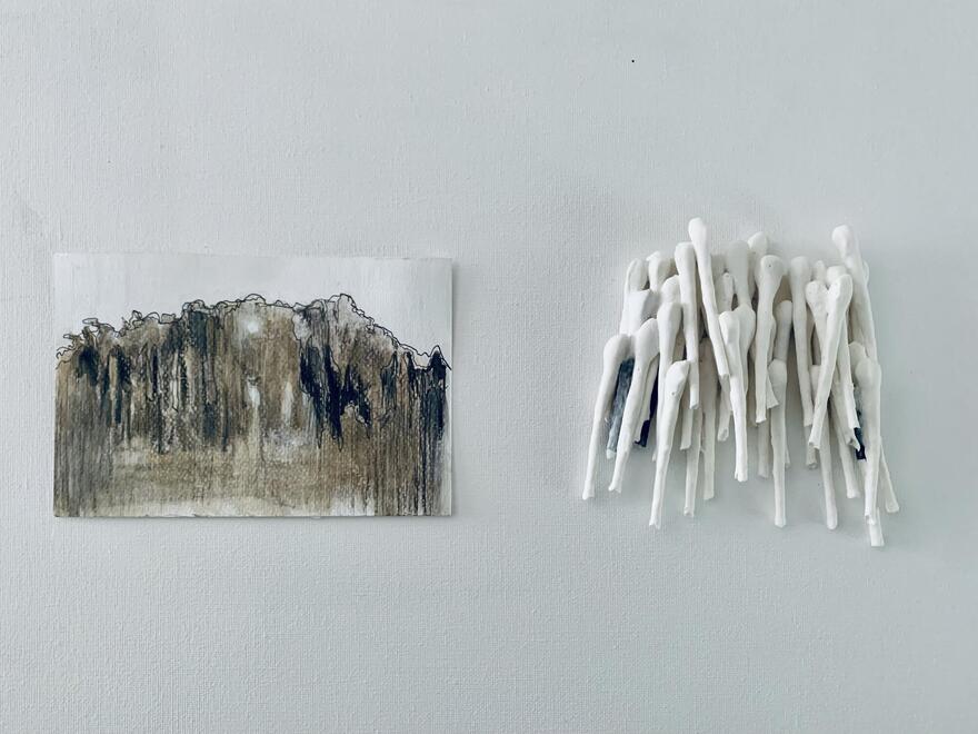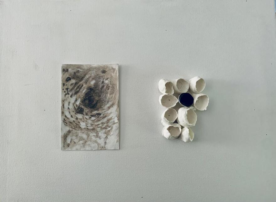 Ik onderzoek stille tussenruimtes: lagen, herinnering en textuur als innerlijke landschappen.