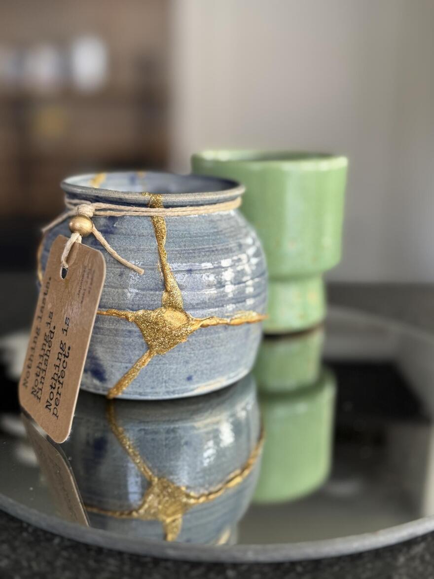 Kintsugi art ligt me heel nauw aan het hart: ik hou van mensen en voorwerpen met een verhaal. Kintsugi is de Japanse techniek om keramiek te herstellen conform de Japanse levensfilosofie én zichtbare breuklijnen.