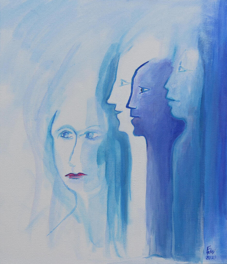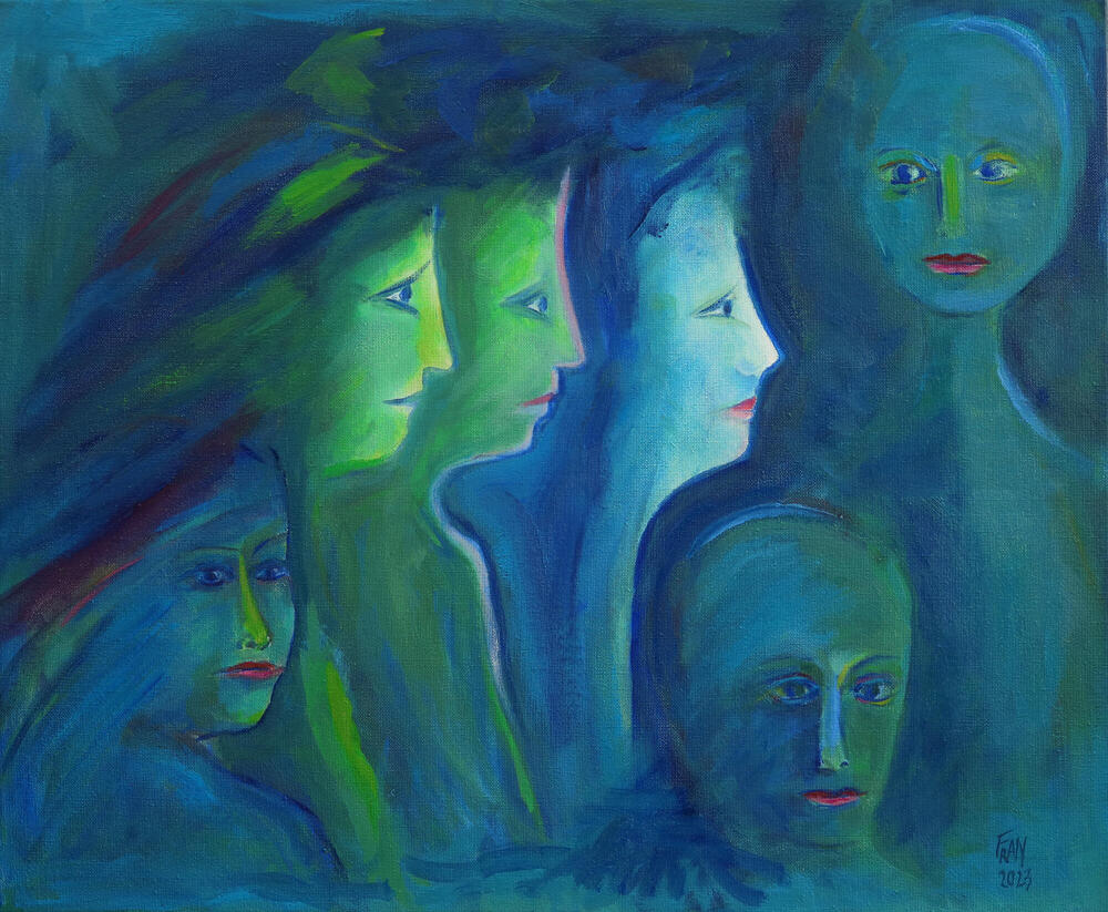 Zowel bij haar creaties als goudsmid als hier uit haar schilderijen blijkt meteen de stem van Francine Vanlerberghe. In beide passies timmerde ze aan haar eigen stijl. Van grillige, organische lijnen en expressieve kleuren maakte ze haar handelsmerk. En ook inhoudelijk zet Francine Vanlerberghe haar weg verder. Met de focus op de innerlijke beleefwereld van haar dromerige personages blijft Francine Vanlerberghe dicht bij haarzelf. Deze artieste beoogt geen realistische portretten maar wil menselijke gevoelens vastleggen. Hoewel haar creaties nostalgie en twijfel uitdragen, is haar werk niet somber. Haar personages blijven niet stilstaan en gaan onderweg naar een onzekere maar hoopvolle toekomst. Maarten Mahieu