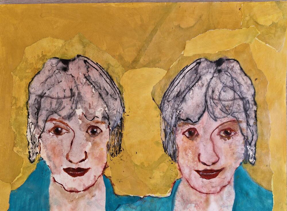 Tweeling, bewerkte monoprint - 40 x 50 cm