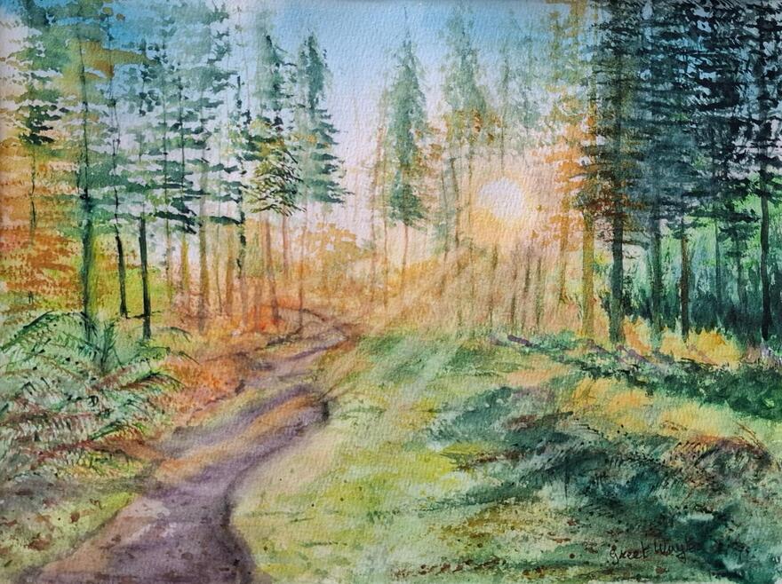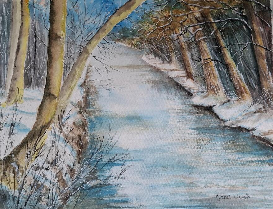 Ik werk meestal in aquarel, en vooral in de zomer ga ik op stap met mijn schilder ezel. Ik zoek een mooi plekje geniet dan van de natuur en van het schilderen. Voor portret gebruik ik gewoonlijk houtskool, grafiet en pastel .