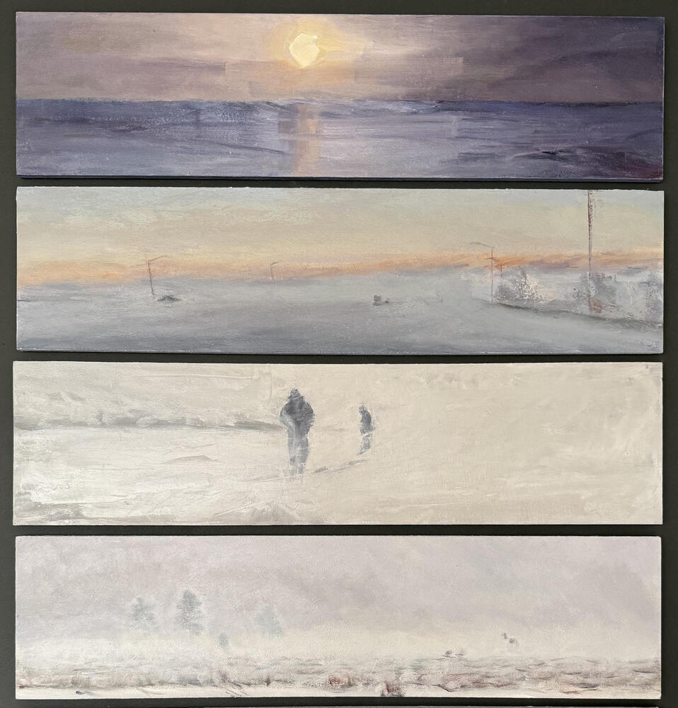 Maar door het gebruik van verschillende technieken met olieverf hoop ik mijn kijk op de wereld te kunnen vertellen door het te schilderen.
