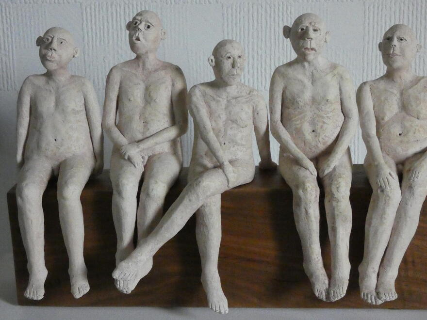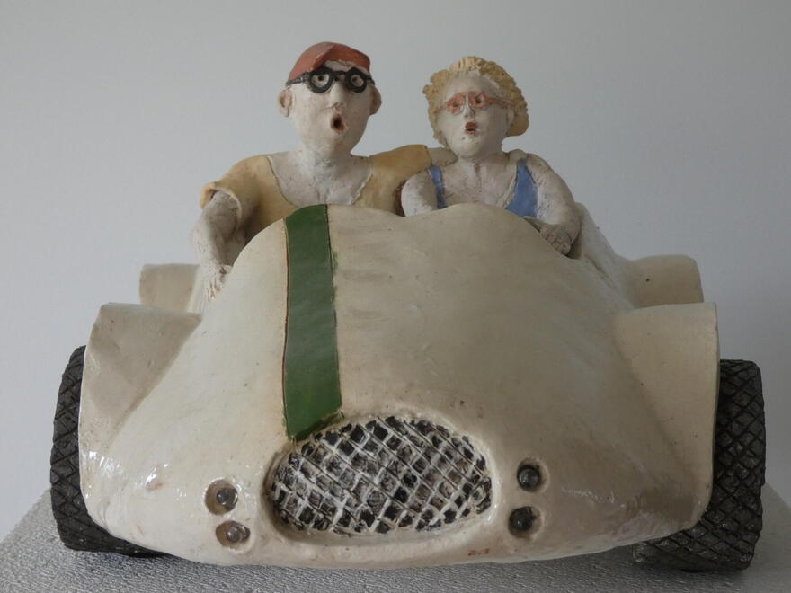 Gestart met schilderen, vooral acryl, maar dan meer en meer mijn gading gevonden in keramiek. Centraal in mijn werk staat de mens en als het even kan, met een vleugje humor.