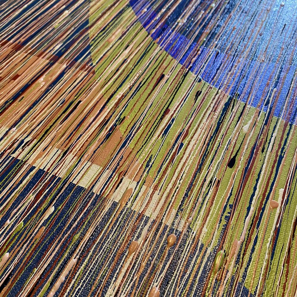 In mijn werk onderzoek ik de balans tussen controle en toeval. Door dripping laat ik verf vrij bewegen over het doek, gestuurd door intuïtie, ritme en het moment.