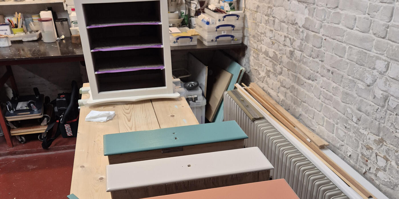 Hilde tovert jouw meubel met veel liefde en vakmanschap om tot een uniek stuk. Ze komt bij je langs met haar kleurkaarten, luistert naar je wensen en naar het verhaal achter het meubel. Samen kiezen jullie de kleuren, waarna Hilde een persoonlijk ontwerp uitwerkt.