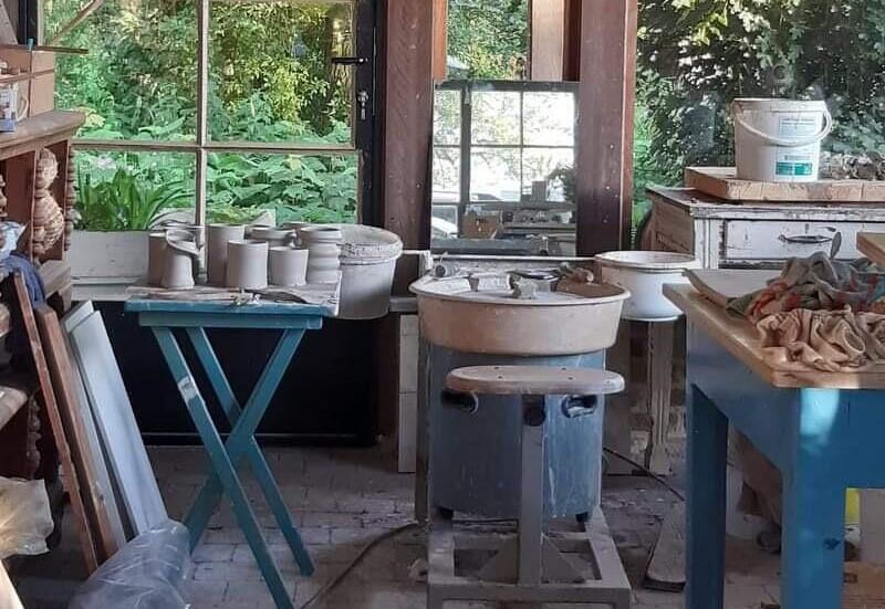 Keramiekatelier Odeveld ligt verscholen in het groen.