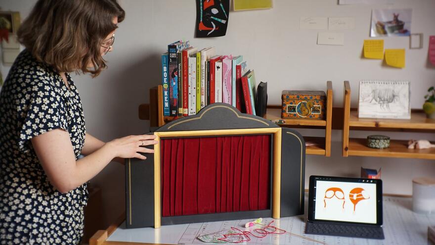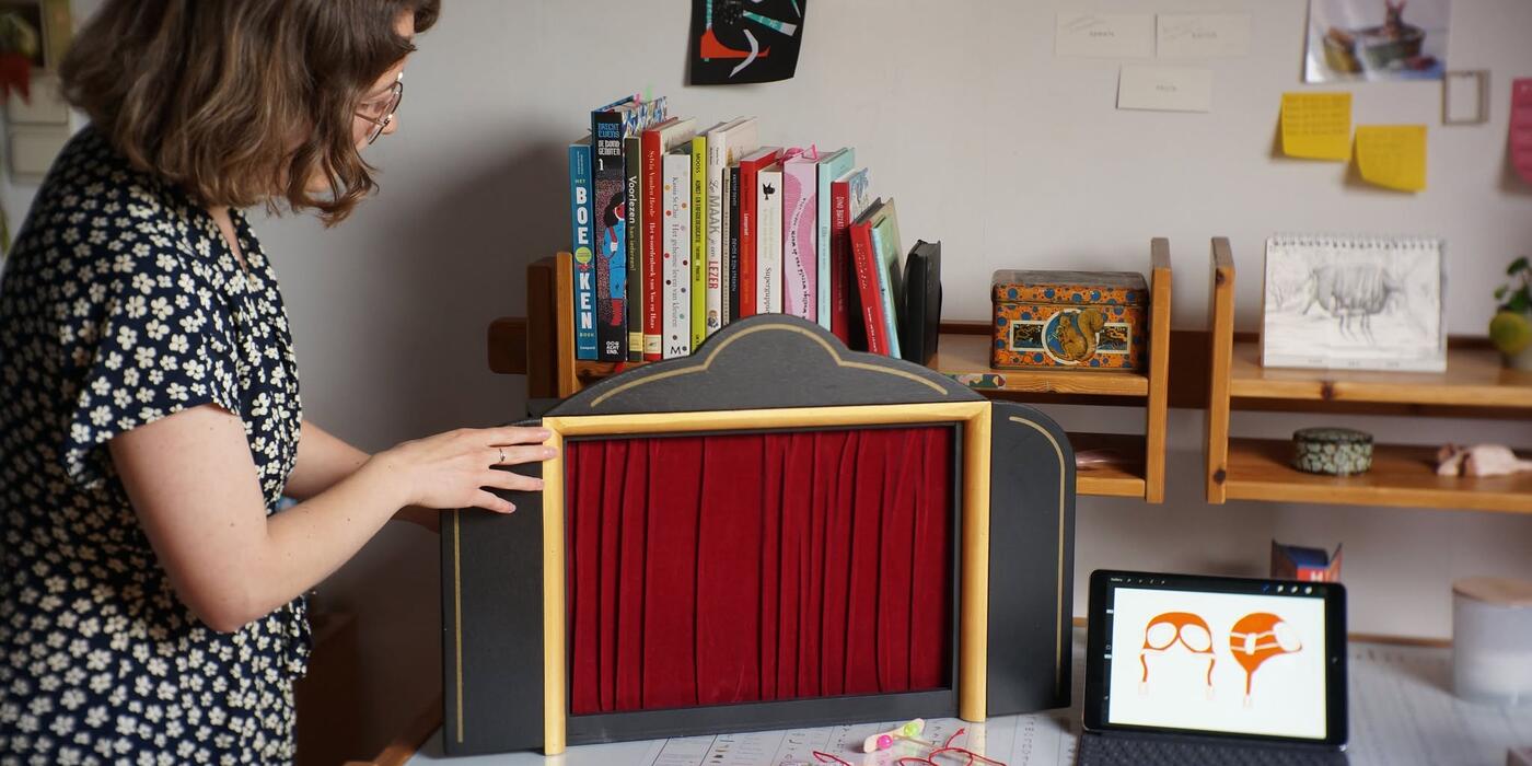 Ine Muys is verhaalmaker en kunstenaar bij Musée Muys. Met kinderen en hun grote mensen beleeft ze beeldrijke boeken.