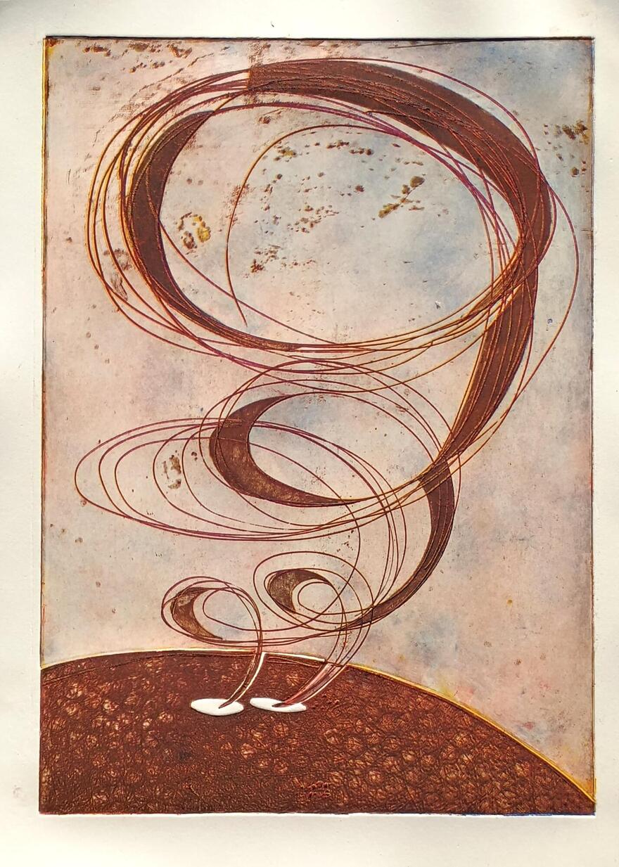 "Tussen hemel en aarde" - collagrafische ets 5 kleuren