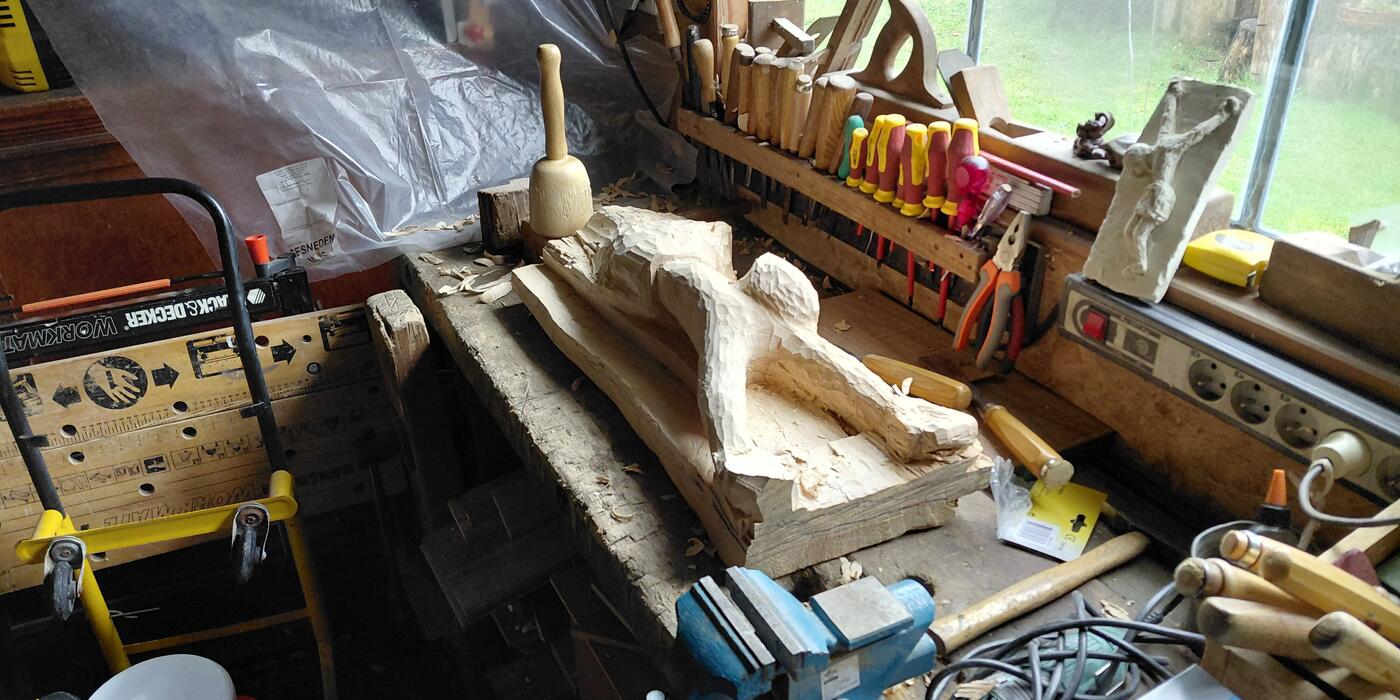 Ik werk graag in en met verschillende materialen zoals hout en steensoorten, klei enz.