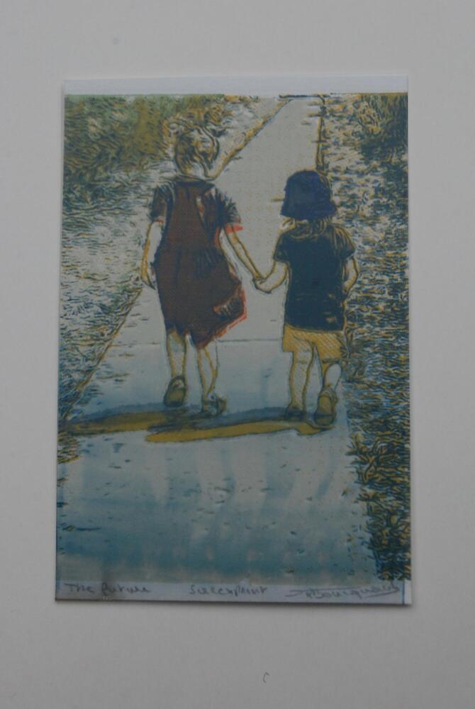 Mijn werk bestaat uit fotografische zeefdrukken, zeefdrukken gebaseerd op kindertekeningen en eerder geabstraheerde werken, juwelen die gebaseerd zijn op kindertekeningen en/of die vanuit een heel persoonlijk ervaring groeiden.