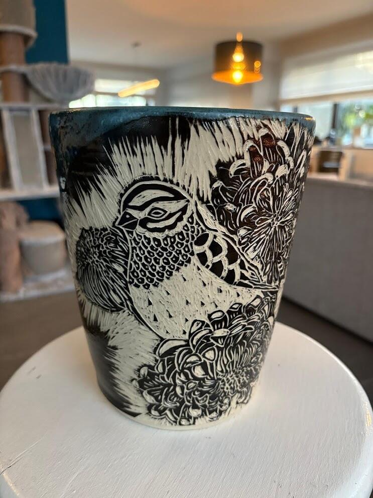 Lucie Renard is gedreven in keramiek. 8 Jaar gelden begon ze met het leren van alle keramiek-technieken. 2 jaar geleden schakelde ze over van avondschool naar de kunstacademie van Maasmechelen. Hoewel ze deze technieken blijft toepassen, heeft ze zichzelf leren draaien op het wiel. Het liefst draait ze mooie vazen en schalen om ze dan te decoreren met de sgraffito techniek.
