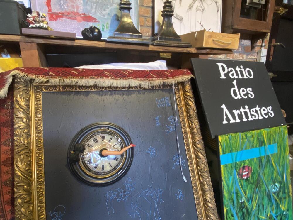 Het is voor mij een AVONTUUR. Ik hou wel van MULTIMEDIA en ECLECTISCH. Zo spring ik van foto’s, video, tekeningen, zeefdruk, schilderen, kleien, houtdruk en andere vormen door elkaar om te maken wat ik denk. Op foto’s wordt getekend of gedrukt. Werken die me op het eerste gezicht niet boeien leg ik aan de kant en kom er dan later op terug. Het wordt dan soms ook iets helemaal anders. Een plat vlak wordt een huisje. Dat huisje krijgt poten en dan wordt ik er vrolijk van.