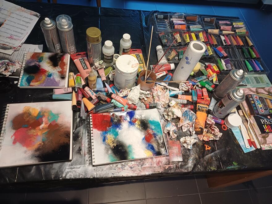Ik werk voornamelijk in mixed media, omdat dit mij toelaat om te bouwen, te schuren, te verbergen en opnieuw te onthullen. Die gelaagdheid is essentieel: ze weerspiegelt hoe emoties zelden eenduidig zijn, maar bestaan uit sporen, verschuivingen en stiltes. Donkerte en licht, zachtheid en kracht mogen naast elkaar bestaan.
