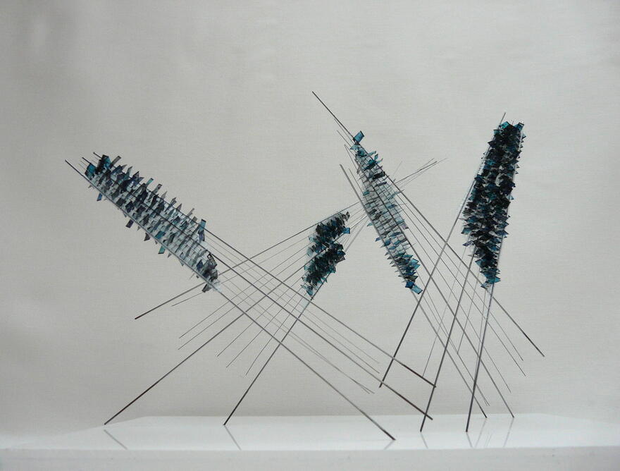 Déceler l’équilibre entre des matériaux souples et rigides et la bonne technique pour les approcher, ne cessent de me passionner. Il y a dans mon tempérament la même recherche de l’équilibre entre le rebelle et le poétique, de l’ordre dans le chaos, toujours en étant prète au compromis.