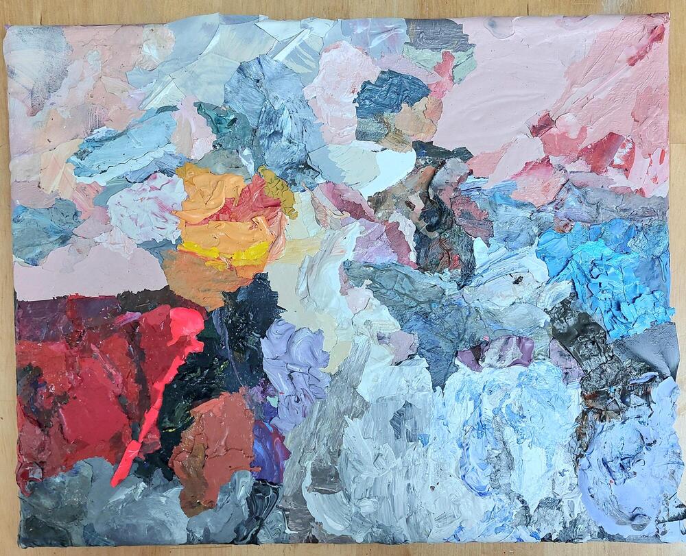 matière: dès le début de mon activité, la ‘matière’ est mon thème principal. Je la laisse parler; j’écoute ce qu’elle veux me dire, je découvre ses spécificités. J’aime donner une signification à ce qui est souvent mise au rebut, donner une signification outre à ce à quoi ils sont destinés. Ainsi, les couleurs mélangées des restants de peinture sur les palettes des peintres ont commencé à me fasciner en voyant les effets parfois magnifiques.