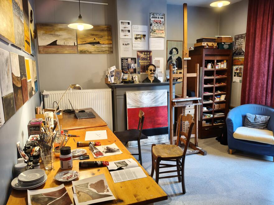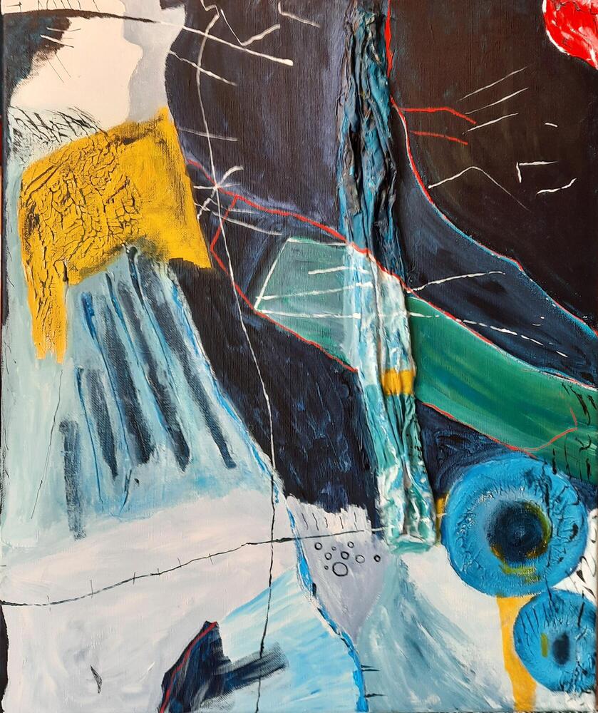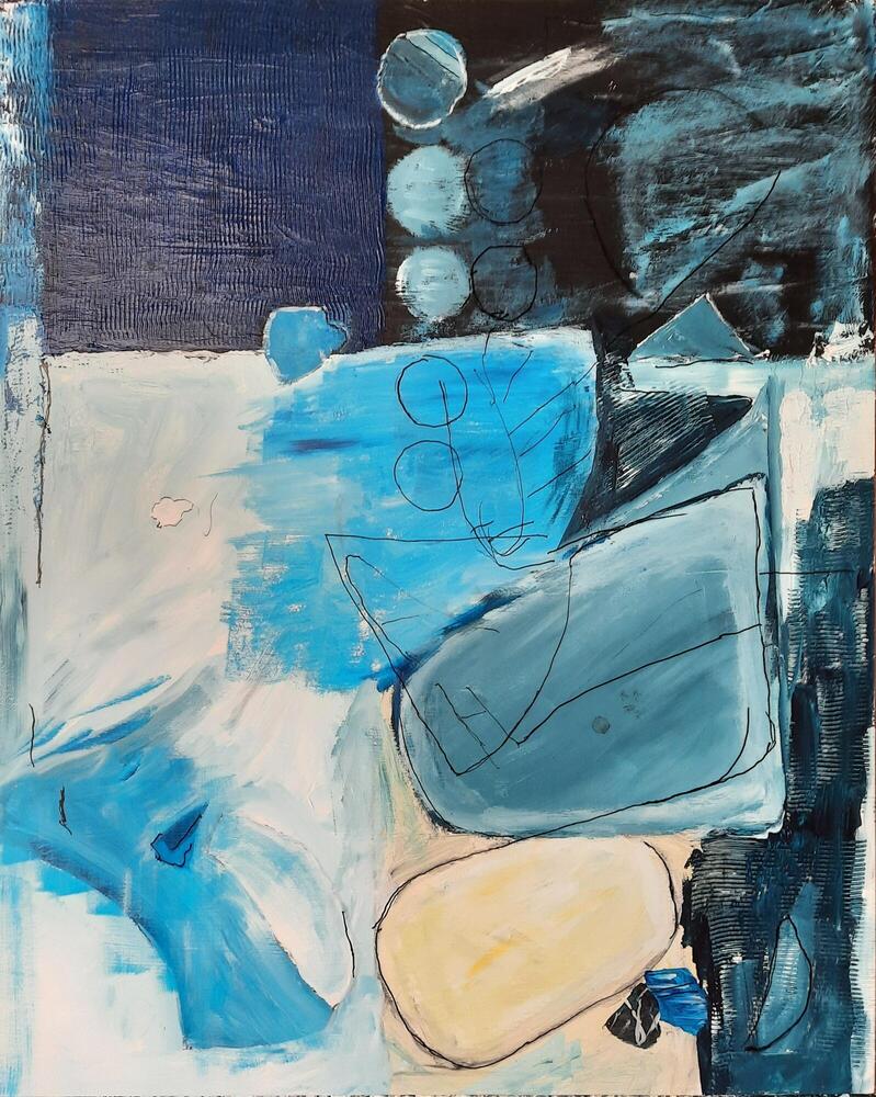Meestal abstracte werken geïnspireerd door landschappen, geschilderd op multiplex of doek met acryl en gesso. Beeldjes zijn eerder figuratief, mixed media.