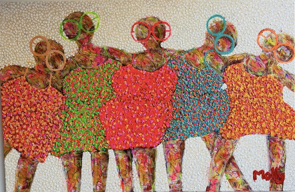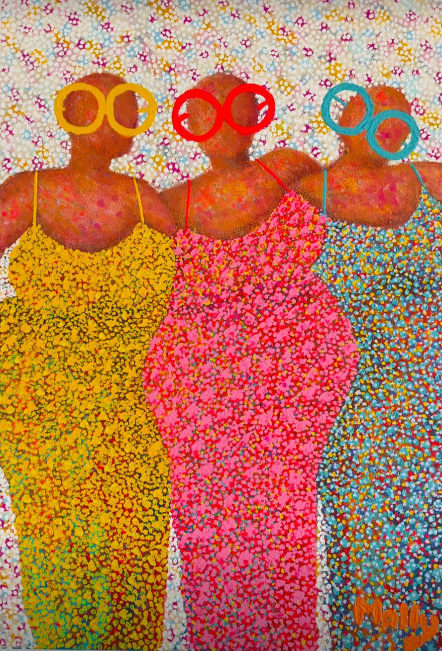 Haar unieke benadering onderzoekt thema’s als vrouwelijke kracht en identiteit. Door middel van levendige kleuren en dynamische vormen vertelt Molly straffe, persoonlijke verhalen die diep geworteld zijn in haar Afrikaans erfgoed.