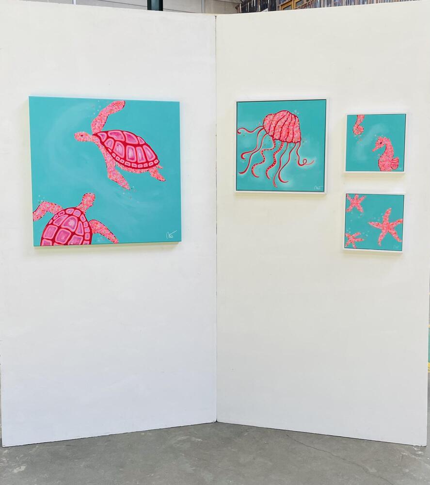 Met haar typische kleurrijke palet brengt deze kunstenares onder de naam Pink Bubbles Art werken die spontaan een gevoel van vrolijkheid en onbezonnen geluk opwekken.
