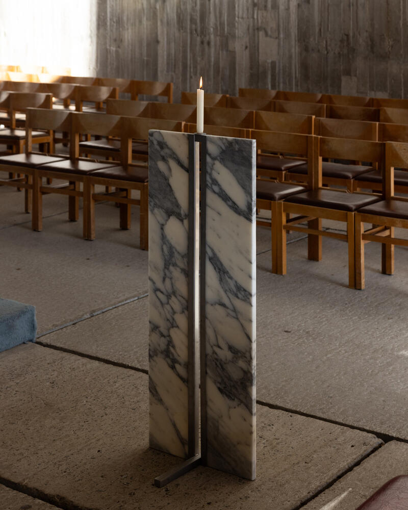 Elk stuk begint met gerecupereerde stukken natuursteen – ooit onderdeel van vensterbanken, schoorsteenmantels of gevels – die zorgvuldig in heel België worden verzameld. Deze fragmenten, getekend door hun vorige levens, worden zonder schade of overdaad opnieuw samengevoegd met behulp van omkeerbare technieken, die hun integriteit respecteren en toekomstige transformaties mogelijk maken.