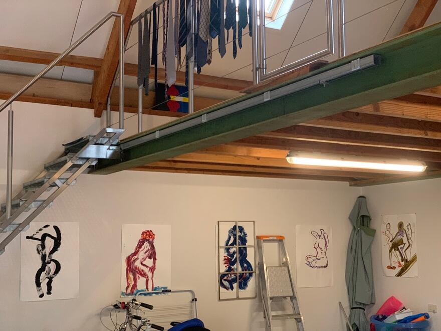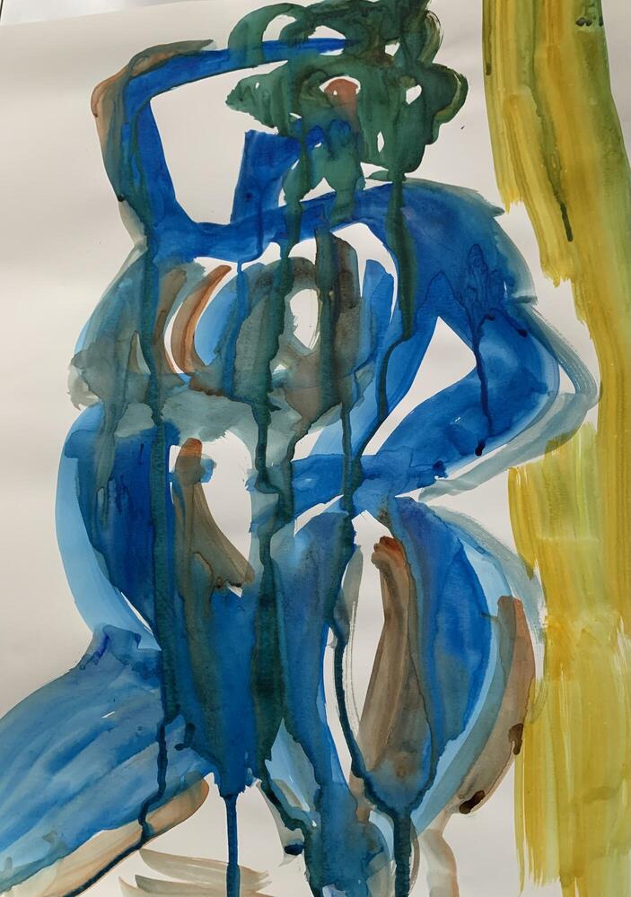 Mijn voorkeur gaat naar verfsoorten op basis van water. Na de spontane, wilde vormgeving laat ik het multicolore water afdruppelen langs een onvoorspelbaar bochtenparcours.