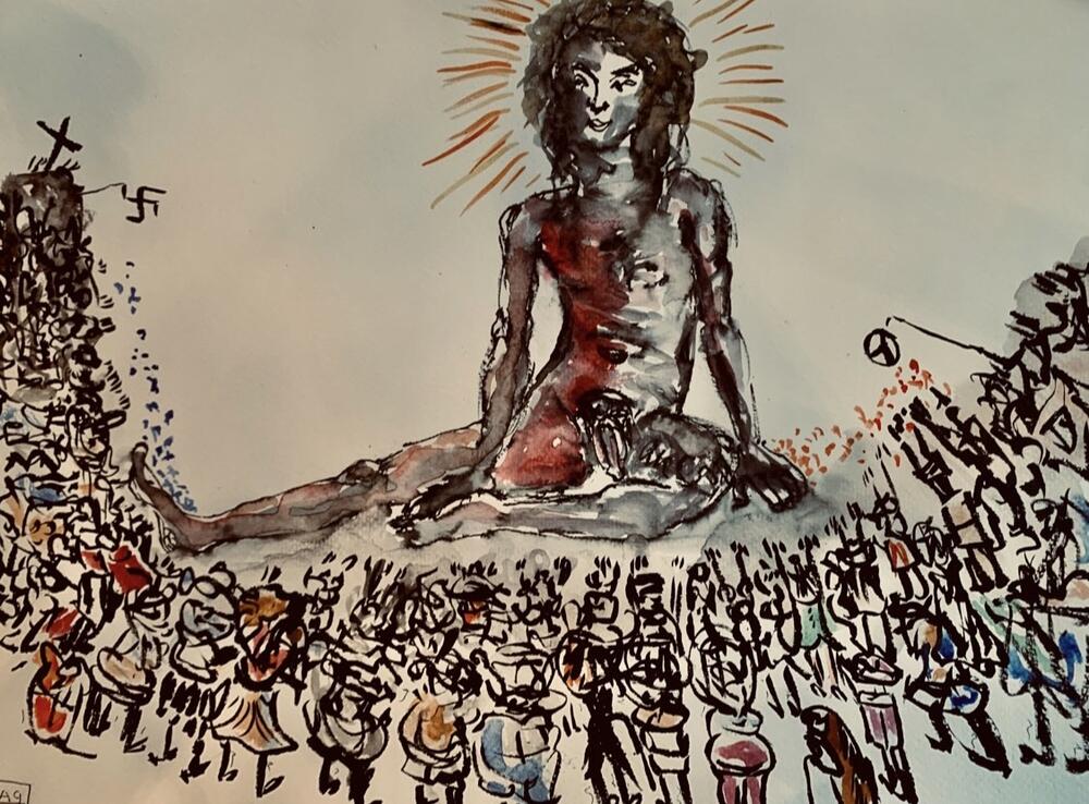 En dan ontmoetten de twee kunstvormen elkaar. Als cover en rug van mijn boek verzoende ik, in sublieme symbiose, persoonlijke tekeningen. Vooraan een zeefdruk van mijn moeder in diverse verschijningsvormen, achteraan een grafische afbeelding van een femme fatale. In mijn tweede boek, Rechtvaardige Rechters, reveleer ik de vindplaats van het gestolen paneel. Een derde boek, Hemelse Horror, komt uit in 2026. Ik hoop via mijn artistieke escapades een voortdurende reis naar de eeuwigheid te blijven creëren.
