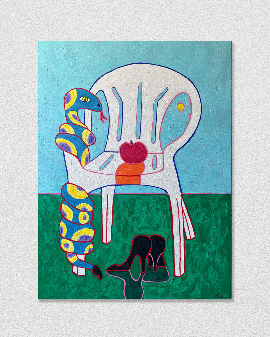 My work is part of a contemporary figurative practice where color becomes a form of resistance to often invisible constraints. Through female figures and simple forms, inspired by a post-naive visual language, I explore the tension between apparent innocence and the forces that shape bodies and lives.