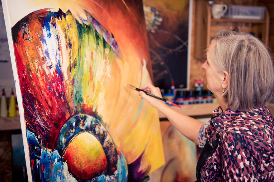 Schilderen is voor mij genietend op weg zijn naar een creatie die mezelf en anderen bekoren kan. Het liefst schilder ik met acryl op doek. Ik creëer graag kunst die al dan niet abstract is, tijdloos en expressief. Er is geen vooropgesteld onderwerp. Mijn werken drukken mijn inspiratie van dat ogenblik uit. Ze zijn een ode aan kleur, warmte, kracht en vrijheid. In mijn realistischer werk zie je regelmatig de natuur in alle facetten.