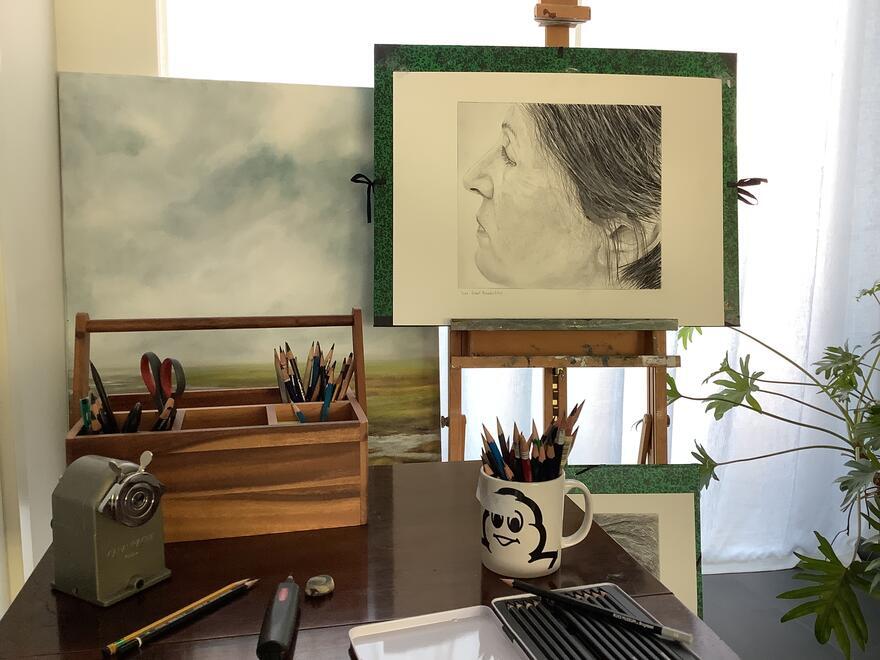 35 jaar lang was ik muziekleraar. Ik studeerde aan het koninklijk conservatorium in Gent muziekgeschiedenis, muziekanalyse en notenleer. Naast muziekleraar was ik gedurende een 6tal jaar ook leraar Esthetica. Kunst heeft me steeds geboeid. In 2014 maakte ik mijn eerste schilderij en 2 jaar geleden mijn eerste tekening. Nu teken ik vooral . En natuurlijk is er nog steeds de muziek ...