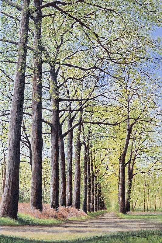 Bosweg te Sint-Jansteen in de lente - Olieverf op doek - afm40x60