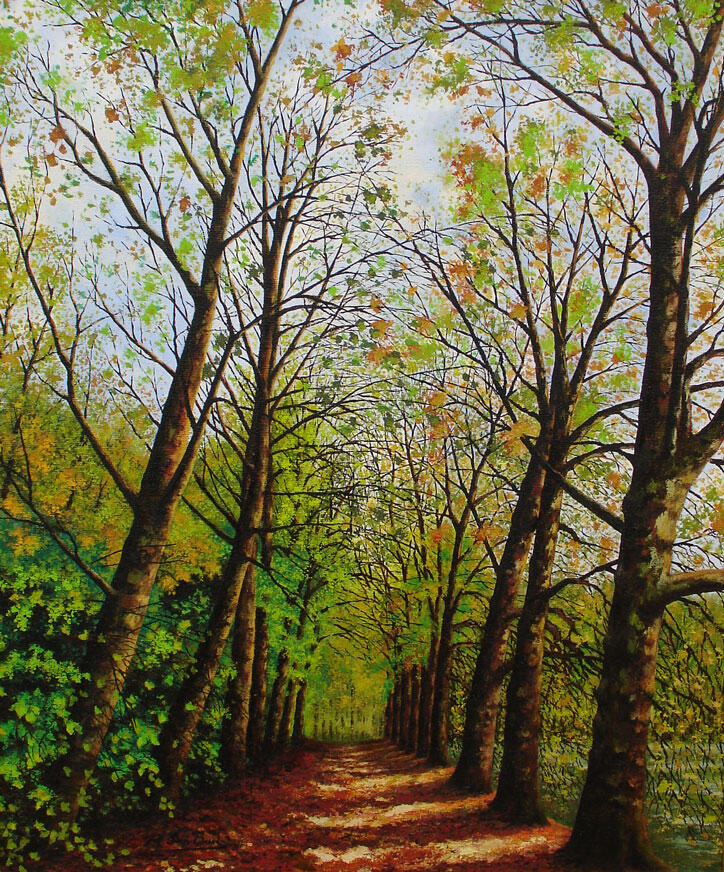 Dreef in kasteelpark te Hingene - Olieverf op doek - afm50x60